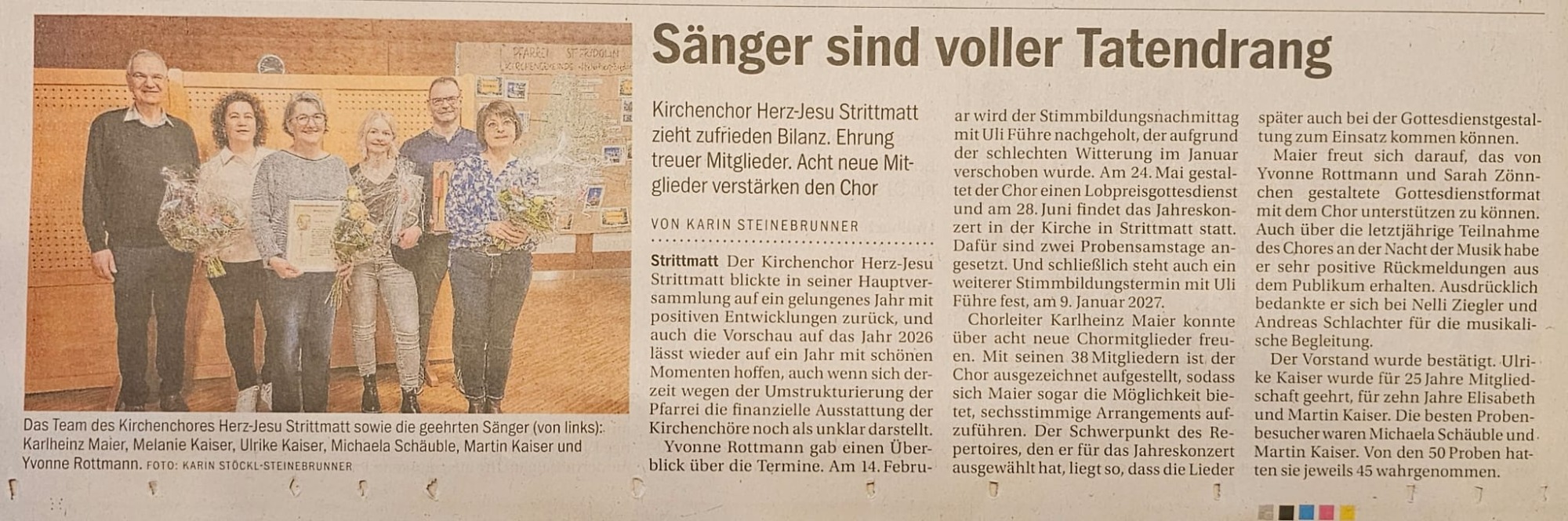 An der diesjährigen Generalversammlung konnten wir auf ein erfolgreiches Gesangsjahr 2025 mit acht neuen Chormitglieder zurückblicken.